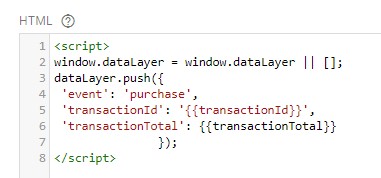 Если клиент перенаправляется на страницу “Спасибо”, и вы используете уровень данных без события, то код электронной торговли должны быть размещен над кодом контейнера Google Tag Manager.