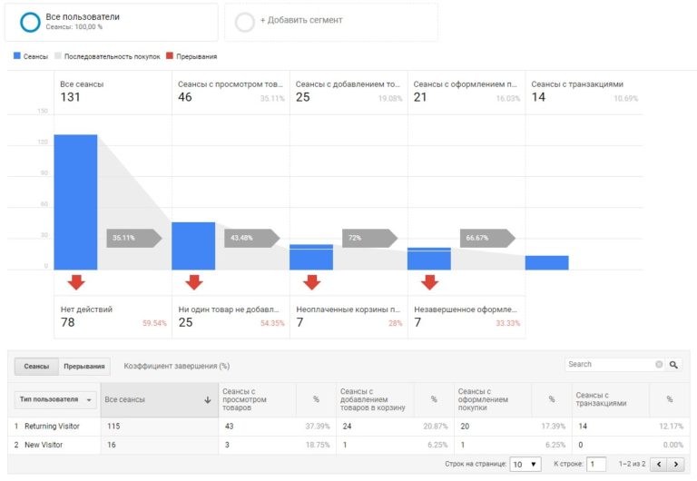 Если вы хотите видеть только данные о продажах, понимать, насколько эффективно продается каждый товар, какие источники трафика генерируют продажи, то достаточно настроить стандартную электронную торговлю. Если вы хотите видеть не только покупки, но и пути пользователей от этапа к этапу на вашем сайте (какое количество пользователей добавило товар в корзину, сколько из них перешло на шаг оформления заказа, а какая часть из этой дошедших совершила покупку), строить по ним сегменты, запускать на них ремаркетинговые кампании, то тогда вам следует выбрать расширенную электронную торговлю.