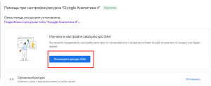 2. В появившемся окне выбрать "Посмотреть ресурс GA4"