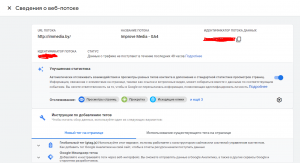 Скопируйте идентификатор потока данных и переходите к настройке в Google Tag Manager