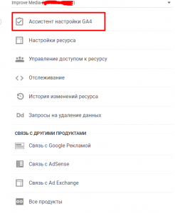 Там выбрать пункт Ассистент настройки GA4