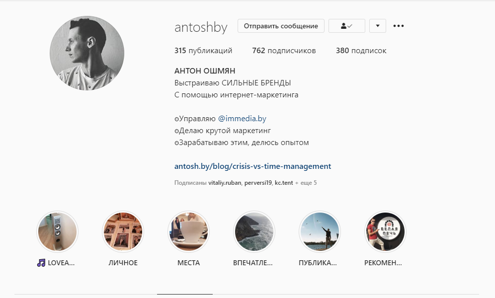 В примерах приведены Instagram-акккаунты проектов